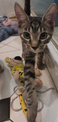 C’est un chaton doux, calme et très affectueux, qui aime qu’on lui accorde de l’attention. Il s’adapte vite et se révèle alors un vrai petit amour : proche, joueur, curieux et d’une grande tendresse .