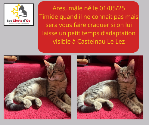 Un très beau chat tigré qui attend encore sa famille, Ares est très gentil , ne demande pas grand , un canapé des câlins , de l'amour. Un jardin serai un plus.