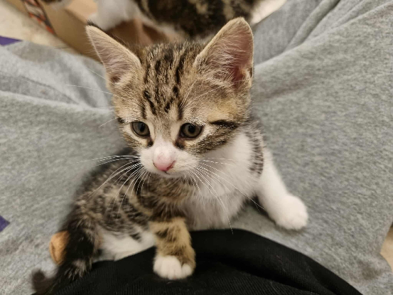 C’est un chaton explorateur, curieux et un adversaire redoutable dans le jeu avec ses frères et sœurs. Avec les humains il se révèle doux, sociable et se laisse bien manipuler. Il fait même des petites léchouilles et se laisse occasionnellement aller à une petite sieste dans vos bras.