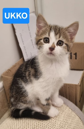Ukko est un petit chaton doux et observateur. Il est sociable et approche l’humain sans peur mais décide lui-même des temps de câlins – lorsqu’on le respecte assez pour le laisser venir, Ukko vient s’installer sur vous et fait parfois même entendre quelques ronrons. Il est le plus calme de la portée mais aussi le plus gourmand ce qui peut être un puissant moteur pour l’éducation !