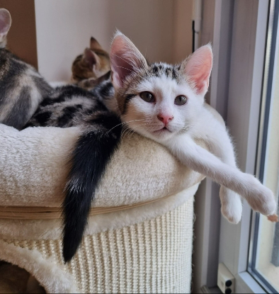 Mielikki est une chatonne très exploratrice et qui ADORE jouer : grimper, chasser la souris, ou se mettre en embuscade dans un carton - Elle sera une incroyable compagne pour des copains chats.