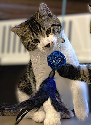 C'est un chaton très dynamique qui aime grimper et s'amuser, pas le temps de s'ennuyer !