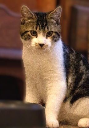 Un peu craintif au premier abord, il aura besoin d'un peu de patience, car une fois en confiance il n'hésite pas à venir réclamer des caresses.