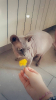 Elle a besoin d'être le seul animal du foyer pour éviter toute tension. Elle vit en intérieur et n'est pas habitué à l'extérieur.