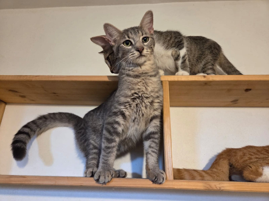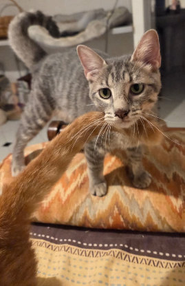 Équilibré, joueur et câlin, il porte une petite cicatrice sur la lèvre — souvenir d’un début de vie difficile. Sa langue a été légèrement abîmée par une nécrose, mais rassure-toi : cela ne l’empêche ni de manger, ni de ronronner, ni d’aimer