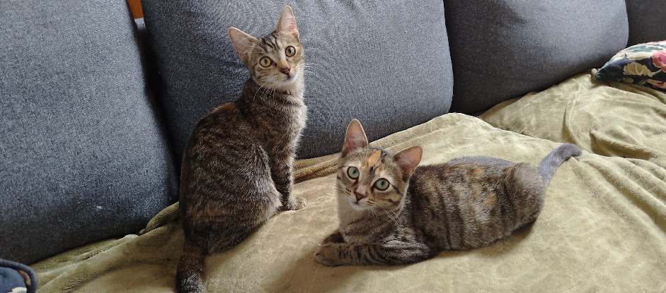 Les deux sont gourmandes, joueuses, de grandes exploratrices d'étagères et fans d'escalades.