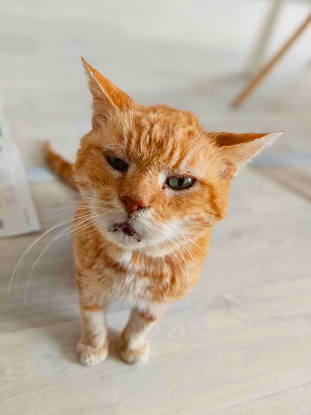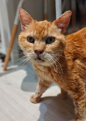 C’est un chat aux petites manies attendrissantes : il aime varier ses lieux de sieste et change régulièrement de panier, comme pour redécouvrir son territoire. Curieux, il observe toujours discrètement les visiteurs, les yeux à demi ouverts, avant de s’approcher timidement pour demander de l’attention une fois qu’il se sent en confiance.