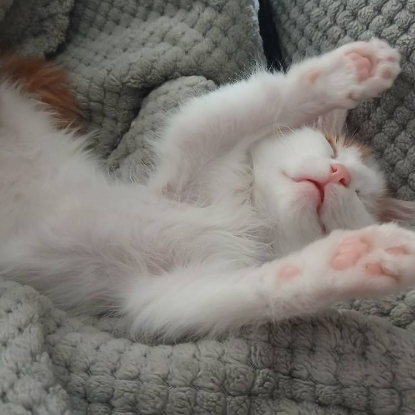 Il est câlin au point de fondre sur vos genoux dès que vous respirez. Joueur, curieux, accroché à l’être humain . Il aime les autres chats de la maison, et notre chienne aussi.