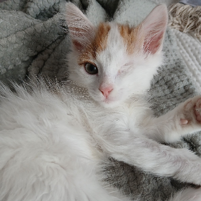 Il n’a que trois mois, un œil en moins, mais une amplitude de douceur qui déborde largement de ce qu’il lui manque.