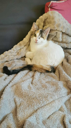 Elle a malheureusement eu le coryza dans ses premières semaines ce qui lui a fait perdre son oeil.