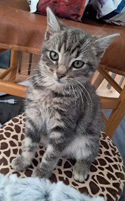 Je suis un petit bout de chaton qui sort de la misère ou le bruit et la peur a été mon quotidien pendant 2 mois