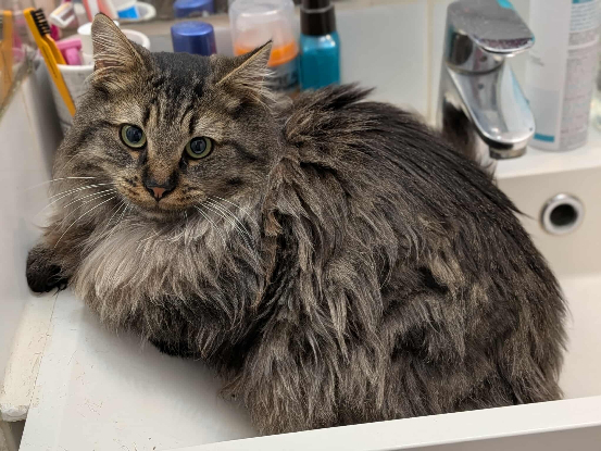 Son poil mi-long demande un brossage régulier. Dumbell cherche une famille calme et patiente pour s’épanouir.