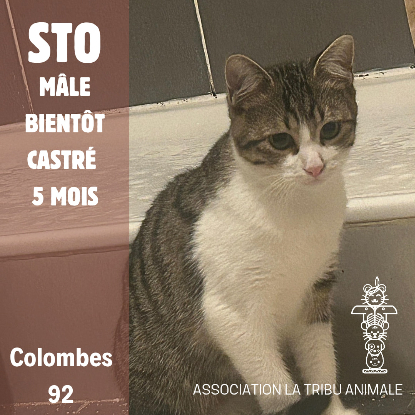 De son court nom, Sto, ce beau petit chaton, arrivé à l'association mi Octobre, se fait pour le moment discret. C'est un félin de la nuit