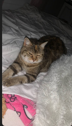 Voilà son histoire : elle a vécu 11 ans avec sa maitresse, elle vivait beaucoup dehors, avait un accès au sous-sol de la maison par une chatière mais passait le plus clair de son temps à l’extérieur.