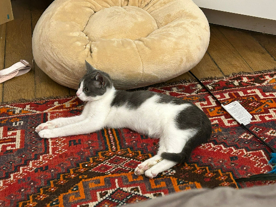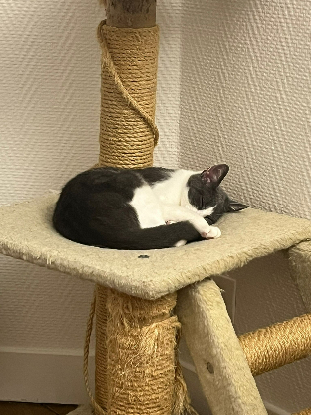 Elle fait un petit bruit en respirant, ce qui la rend encore plus mignonne, tout comme sa maladresse ? Très joueuse, elle est copine avec Taïko et Milo, deux chats qui sont avec elle.