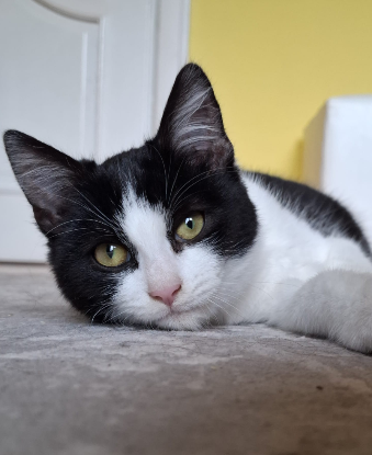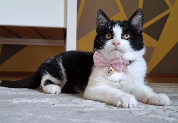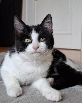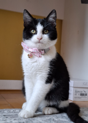 Tuxie est une chatonne vive et joueuse, toujours prête à s’amuser avec ses jouets ou ses copains chats. Elle est curieuse, drôle et adore les câlins une fois en confiance. Au début, elle peut être un peu timide et réservée, mais avec un peu de patience (et quelques friandises !), elle s’ouvre et devient très affectueuse.
