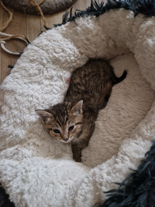 Né le 22/04/25, arrivé en transfert association avec sa mère et son frère adoptés depuis, Aristote est un chat bien sevré, élevé par sa mère, assez timide au premier abord, gourmand, très câlin quand il connaît. Il serait bien en appartement ou maison sans sortie extérieure avec un ou des copains. Il s'entend très bien avec ses congénères. Participation aux frais vétérinaires de 150€.