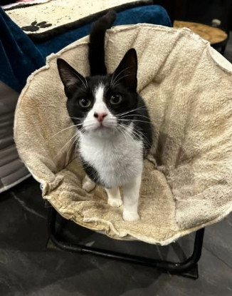 Je suis une adorable petite perle. J'adore me blottir sur les genoux, ronronner….Suivre les humains de partout…Je suis une bavarde et je ne vous laisserai pas tranquille tant que vous ne m' aurez pas fait des câlins….