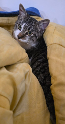 Sam, adorable chaton, cherche une famille aimante pour la vie.