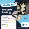 Moustache est adoptable sous contrat associatif, et certificat d’engagement et de connaissance.
