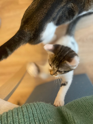 La propreté est en cours d'acquisition. Serge pourra être adopté seul ou avec d'autres chats. S'il est seul dans le foyer, l'éducation sera à continuer, notamment en matière d'autocontrôles.