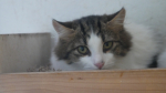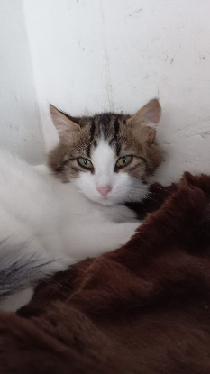 C'est un chaton craintif qui n’a jamais connu l’humain, il ne présente pas d’agressivité et se laisse caresser mais n’apprécie pas encore. Il n’a pas non plus encore prit goût au jeu. C’est un chaton plutôt de nature calme et douce.