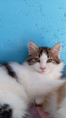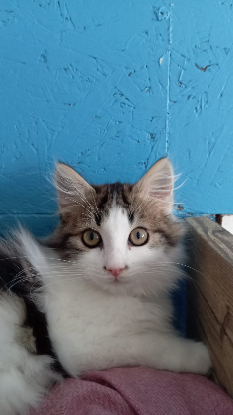 C'est une chatonne craintive qui n’a jamais connu l’humain, elle ne présente pas d’agressivité et se laisse caresser mais n’apprécie pas encore. Elle n’a pas non plus encore prit goût au jeu. C’est une chatonne plutôt calme et douce.