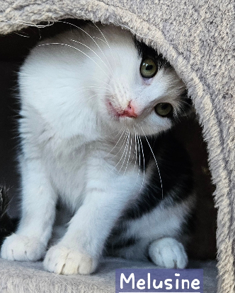 * MELUSINE a été trouvée errante dans un jardin de particulier qui ont voulu l’accueillir mais leurs deux autres chats n’étaient pas d’accord. Elle a donc rejoint le refuge le 31/10 d’où sont prénom de petite sorcière mignonne et coquine.