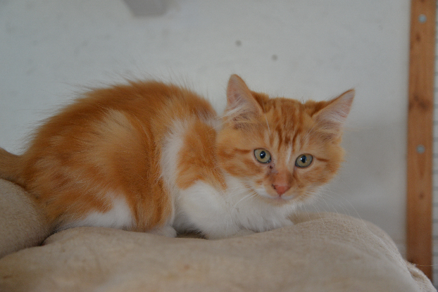 KISS est un chaton craintif qui n’a jamais connu l’humain mais qui avec douceur apprécie les caresses et le jeu. Il deviendra une fois en confiance un chaton gentil, doux et affectueux c’est certain.