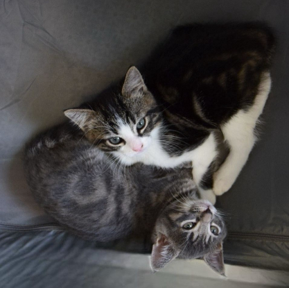 Dans l'idéal, l'idéal, on aimerait trouver une famille avec déjà un chat chez eux, joueur, qui adopte le duo. Donc grand appartement ou maison avec jardin sécurisé pour avoir 3 chats au total.