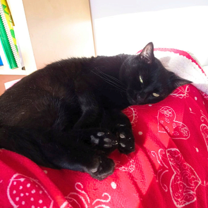 Tout ce processus s’est révélé payant : aujourd’hui cette beauté est une chatte joueuse, dynamique qui apprécie passer du temps avec ses humains de compagnie. Elle est capable de s’occuper et de s'amuser seule, mais lorsqu’elle veut du contact, elle s’approche et donne des coups de tête pour obtenir des caresses. De son passé dehors, elle conserve une certaine crainte vis-à-vis d’éléments stressants comme les gestes brusques et une approche de la main trop directe. En cela, nous préconisons une adoption au sein d’une famille sans enfants en bas âge et qui adoptera des gestes adaptés pour maintenir et développer le lien de confiance.