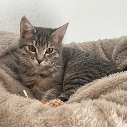 C’est un chaton qui vous fera chavirer au premier regard. Il est assez expressif (il miaule quand il a faim, besoin d’un câlin ….) mais il sait aussi vous charmer en faisant de la break dance. Il danse de l’arrière train quand il court trop vite sur le carrelage ! il a le déhanché d'Elvis Presley ?mais attention il sait grimpé en haut des armoires.