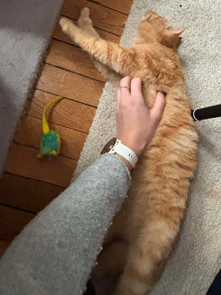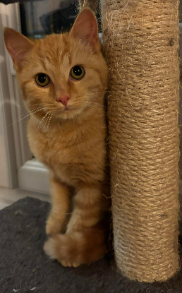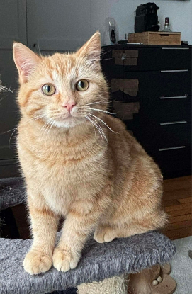 Petite chatte rousse au cœur immense, elle a été trouvée dehors, blottie dans des branchages, et cette période compliquée a laissé chez elle un besoin profond de présence et de sécurité.