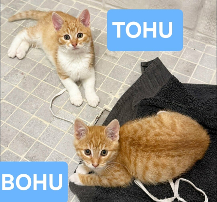 Bohu est plus réservé que son frère au premier abord, mais c’est aussi un chaton très joueur, surtout lorsqu’il s’agit de partir à l’aventure avec Tohu. Plus calme, plus posé, il observe avant d’agir. Il adore jouer avec son frère et partager des moments de complicité, mais sait aussi apprécier des temps plus tranquilles. Il aura besoin d’un peu plus de temps pour avoir confiance et débloquer les ronrons, mais deviendra très vite fan de caresses.
