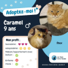 Notre beau et tendre Caramel cherche une famille adoptive suite au décès de son humaine, qui était une bénévole de l’association. Caramel a toujours été entouré d’humain, et il adore cette présence. Caramel sait ce qu’il aime : les gratouilles, les siestes sur les plaids, un peu de soleil sur le balcon, et surtout beaucoup d’amour. C’est un chat calme, douillet, qui promet de beaux moments de douceurs. En plus d’être très beau, c’est un chat exceptionnel !