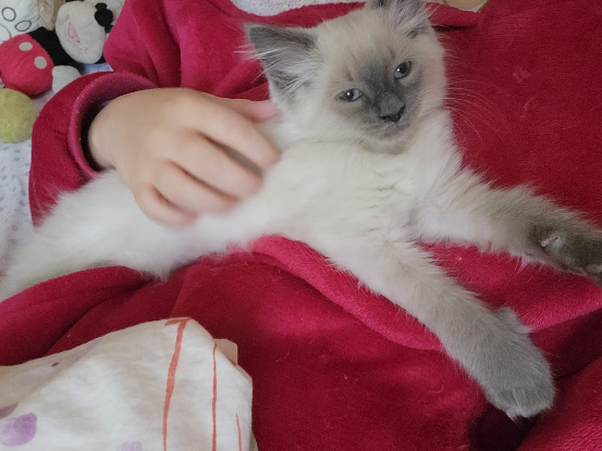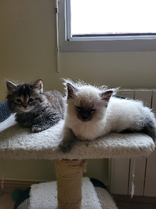 Je suis un chaton plein de vie qui adore jouer avec mes frères et sœurs ou avec mon humain !