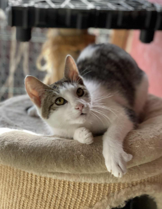 Devon, c’est un petit chaton doux et affectueux, avec un cœur aussi tendre que son pelage. C’est un minou calme et facile à vivre, qui aime être proche de ses humains : blotti sur les genoux, ronronnant tranquillement à vos côtés ou vous suivant avec sa curiosité toute mignonne.