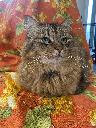 Elle vit avec une chatte en FA avec laquelle elle s'est vite habituée et adore jouer avec les enfants.
