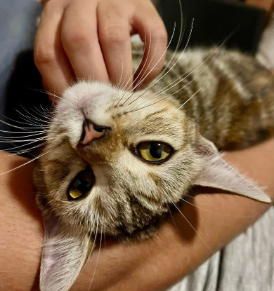 Je suis une minette pleine d’amour : j’adore les câlins, surtout les grattouilles derrière les oreilles ??