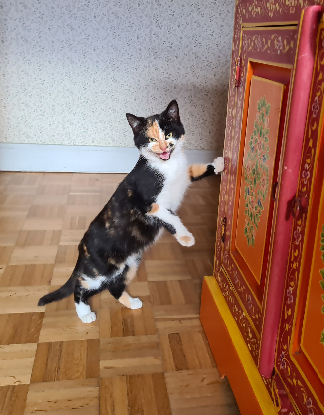 Elle reste timide, et pschitt de temps en temps ! Onze est calme et douce. Elle aime les caresses et ne demande qu'à vivre une belle vie auprès d'adoptants patients et à l'écoute de ses besoins.