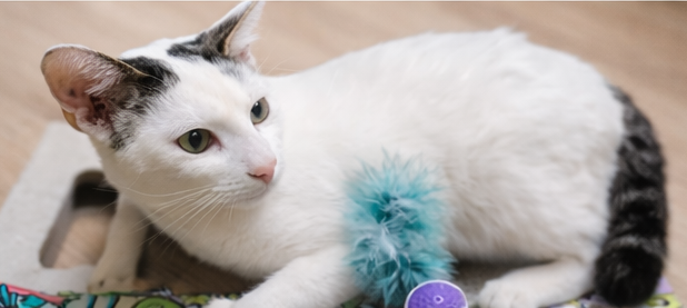 L’animal est identifié, vacciné (primo + rappel contre le virus de la panleucopénie féline, l'herpès virus félin, le calicivirus félin et le virus de la leucémie féline), déparasité interne/externe (vers et puces), stérilisé et testé négatif FIV/FELV.