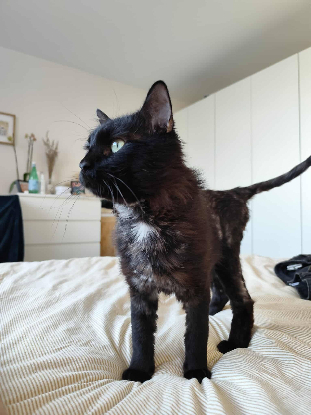 Né le/en : janvier 2023 ⚖️ Poids actuel : 4,5 kg ?? Ententes : OK chats ? Histoire : Trouvée errant en très mauvais état. Malgré les épreuves qu’il a traversées, Chasticot déborde d’une incroyable envie de vivre. Sociable et très proche de l’humain, il a surtout une passion assumée : la gourmandise. Il suffit d’un pas vers la cuisine pour le voir surgir en plein sprint et se poster fièrement devant sa gamelle. D’ailleurs, quand on ne sait pas où il est… inutile de chercher bien loin : la cuisine est toujours un bon point de départ. Cette gourmandise est un véritable atout, car elle permet de lui administrer son traitement sans difficulté. Chasticot est atteint d’une insuffisance rénale et devra recevoir des médicaments le soir, à vie. Il faudra également bien surveiller sa santé. Grand amateur de caresses, il apparaît comme par magie dès le réveil, prêt à réclamer son quota d’affection. Il faudra toutefois respecter ses limites : Chasticot n’apprécie pas qu’on touche certaines parties de son corps (dos, arrière-train, ventre, pattes), encore très marquées par les lourdes fractures qu’il a subies lors de sa chute. La douceur et la patience seront essentielles pour gagner pleinement sa confiance. Il s’entend bien avec les autres chats, même s’il apprécie aussi son indépendance et ne recherche pas constamment leur présence. Côté santé : Chasticot garde malheureusement des séquelles de ses mauvaises aventures et doit aujourd'hui avoir un suivi régulier chez le vétérinaire (prise de sang et échographie tous les 6 mois) ainsi qu'un traitement à vie. Chasticot a besoin d'un foyer aimant, capable de lui offrir attention, respect et stabilité, pour continuer à savourer la vie qu’il aime tant. Identifié, vacciné, déparasité, testé FIV/FELV négatif, castré ? Visible dans le 94 ? Frais d’adoption : don libre ? Contact : [email protected] Adoptions possibles en région parisienne et départements limitrophes.
