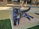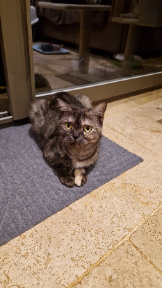 Nya est un chat femelle type British Shortair, robe Black tortue Smoke, identifiée, stérilisée, vaccinée et testée FIV/FELV négative.