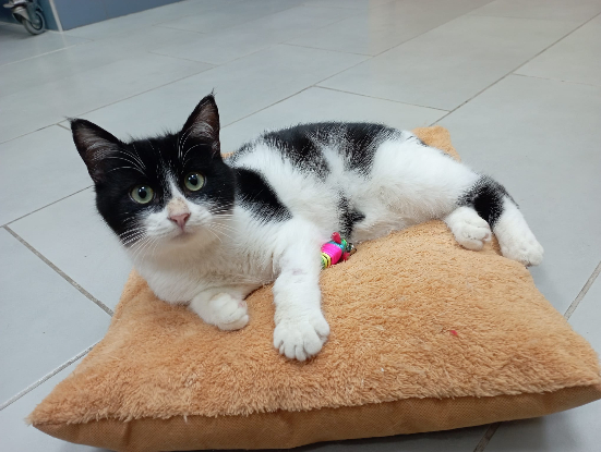 Sa queue était en train de nécroser et il a dû être amputé sans attendre. Il souffre également d’une vertèbre luxée qui devrait se remettre doucement dans le temps.