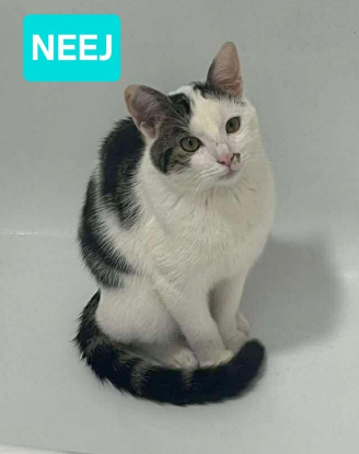 Neej est un adorable chat mâle d'environ 1 an, particulièrement gentil. Il adore les autres chats et est très proche des humains.