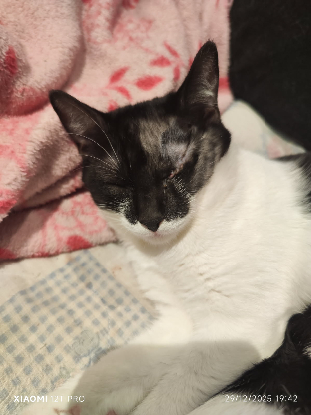 Albane a été trouvée toute petite avec sa sœur Alana et recueillie par une personne bienveillante devenue depuis famille d’accueil au sein de notre association. Fragile à son arrivée, Albane a dû être biberonnée puis soignée très tôt pour un coryza sévère. Malgré des soins attentifs, des suivis vétérinaires réguliers et des traitements sur plusieurs mois, son œil gauche, trop gravement atteint, n’a malheureusement pas pu être sauvé.