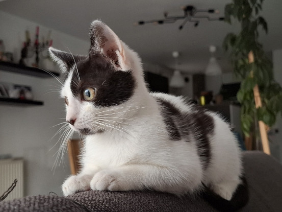 Nous cherchons pour cette petite merveille un foyer avec déjà au moins un chat présent, d'une part car elle n'a pas bénéficié d'un sevrage normal (car elle a été sauvée à seulement 5 semaines contre 12 semaines pour un bon sevrage), et et a besoin de continuer l'acquisition des codes félins, et d'autre part car elle aura besoin d'au moins un compagnon de jeu pour dépenser toute cette énergie.