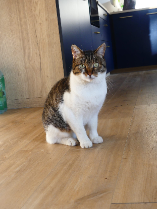 Il vit aujourd’hui en Famille d’Accueil et cohabite bien avec les autres animaux présents (plusieurs chats et une petite chienne) : il fait sa petite vie tranquilou bilou !