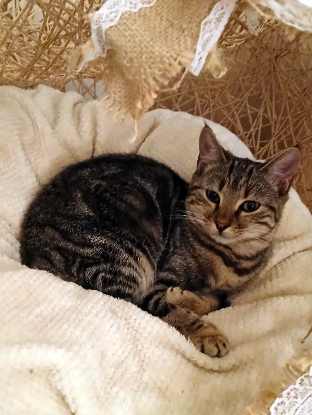 J'aime ronronner et je me laisse caresser ? quand je le décide ! J'aime jouer, mais je suis une petite minette assez calme. Ma passion est de me cacher pour faire la sieste.