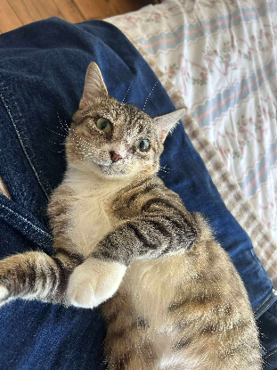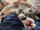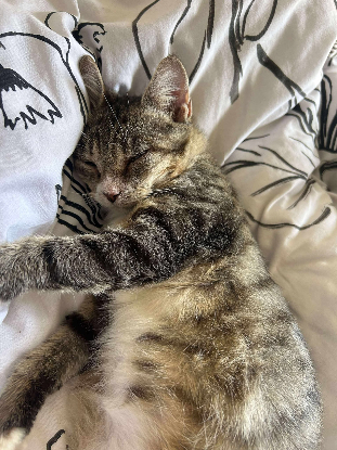 Je suis une boule de câlins sur pattes, toujours partante pour une sieste collée à toi. Mais attention, je suis aussi une vraie pile électrique : je cours partout, je glisse sur le parquet, je fais des sprints à toute heure (midi ou 4h du mat’, peu importe
